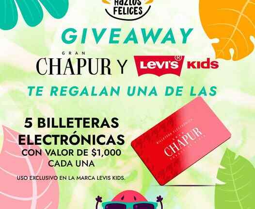 Levi’s Kids te invita a participar a su concurso en el que podrás ganar 1 de 5 billeteras electrónicas Gran Chapur, si quieres ser ganador realiza la mecánica siguiente: