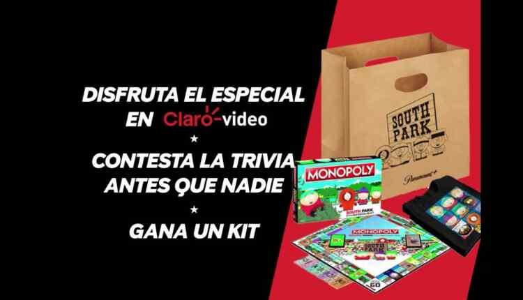 Claro Video regalará a los participantes ganadores: Un kit con un juego de mesa de Monopoly y una playera de South Park.