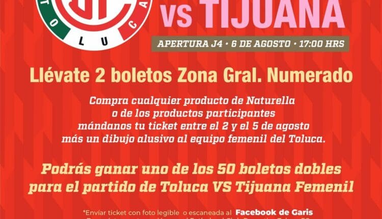 Servicio Comercial Garis regalará a los participantes ganadores: Un pase doble al partido de Toluca vs Tijuana femenil.