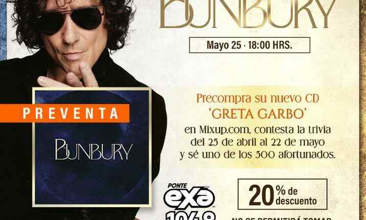Esta promoción te ofrece la posibilidad de ganar uno de los 500 pases sencillos para asistir a una firma de autógrafos exclusiva con Enrique Bunbury. Este evento se llevará a cabo el 25 de mayo a las 6:00 pm en CDMX (lugar por confirmar).