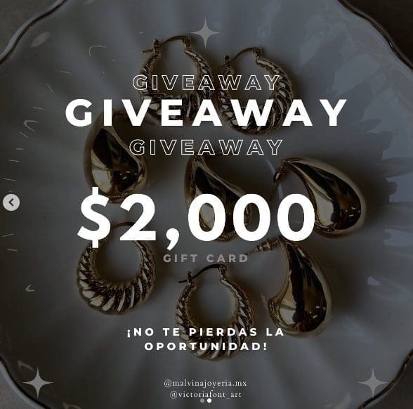 Hazte seguidor de las cuentas de Instagram de @victoriafont_art y @malvinajoyeria.mx, ubica la publicación del concurso, dale like y en la sección de comentarios etiqueta a un amigo. Entre más amigos etiquetes en diferentes comentarios, tendrás más posibilidades de ganar.