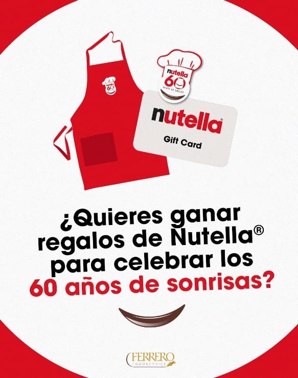 Ferrero Food Service te invita a participar a su concurso en el que podrás ganar 3 kilos de Nutella + tarjeta de regalo de $1,000.00, si quieres ser ganador realiza la mecánica siguiente: