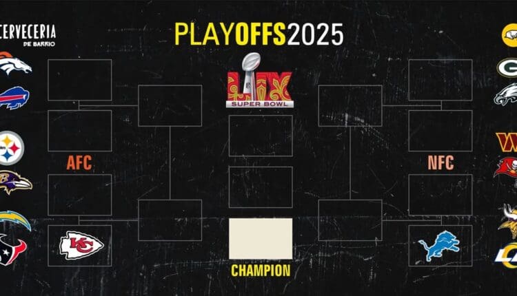 Tendrás que seleccionar a los equipos que ganarán los juegos divisionales, a los equipos que ganarán los juegos de campeonato y al equipo que ganará el Súper Bowl LIX. Comparte la imagen de tus pronósticos en tu cuenta de Facebook Instagram y etiqueta a La Cervecería de Barrio