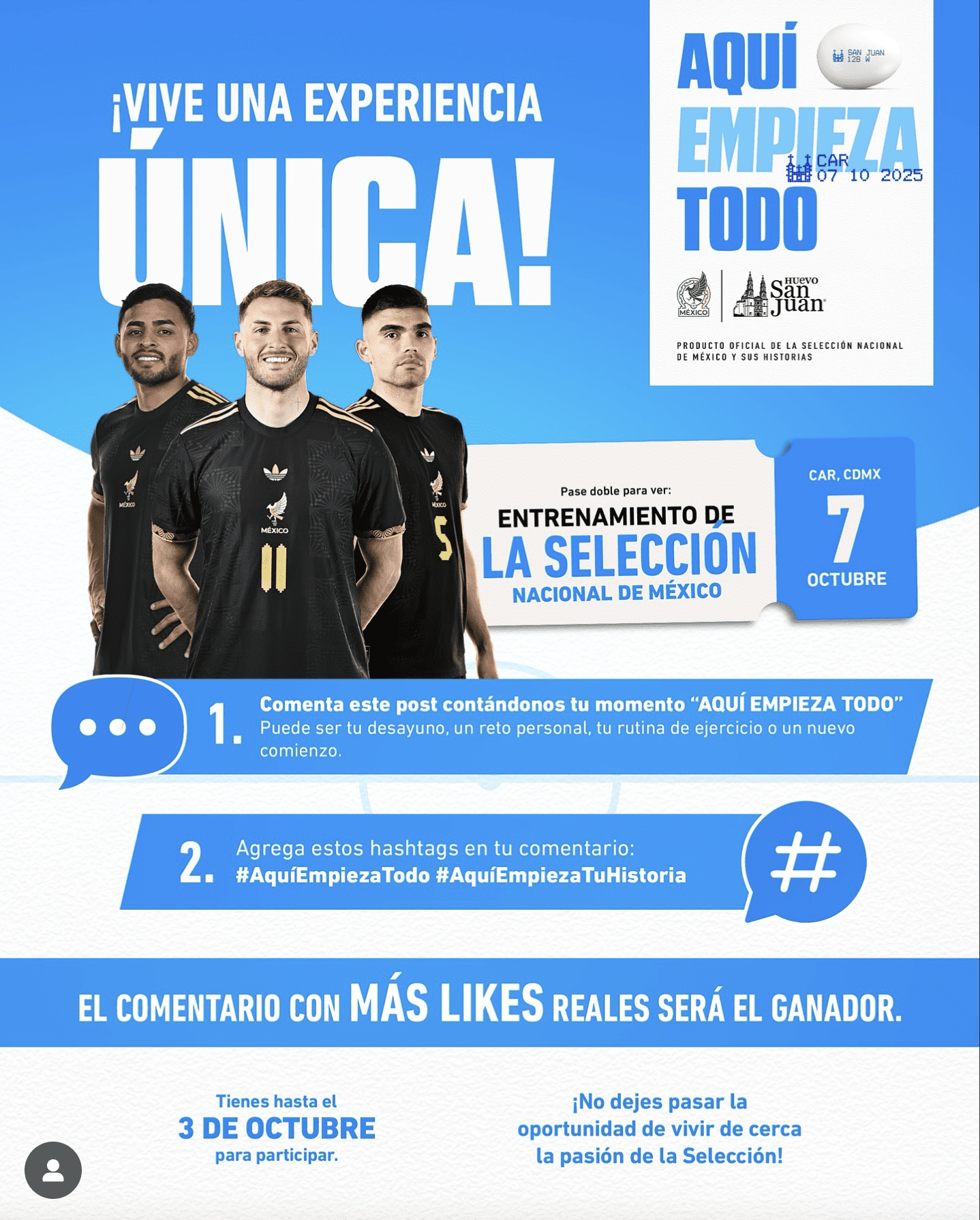 Huevo San Juan te invita a participar a su concurso en el que podrás ganar accesos al entrenamiento de la Selección Mexicana, si quieres ser ganador realiza la mecánica siguiente:
