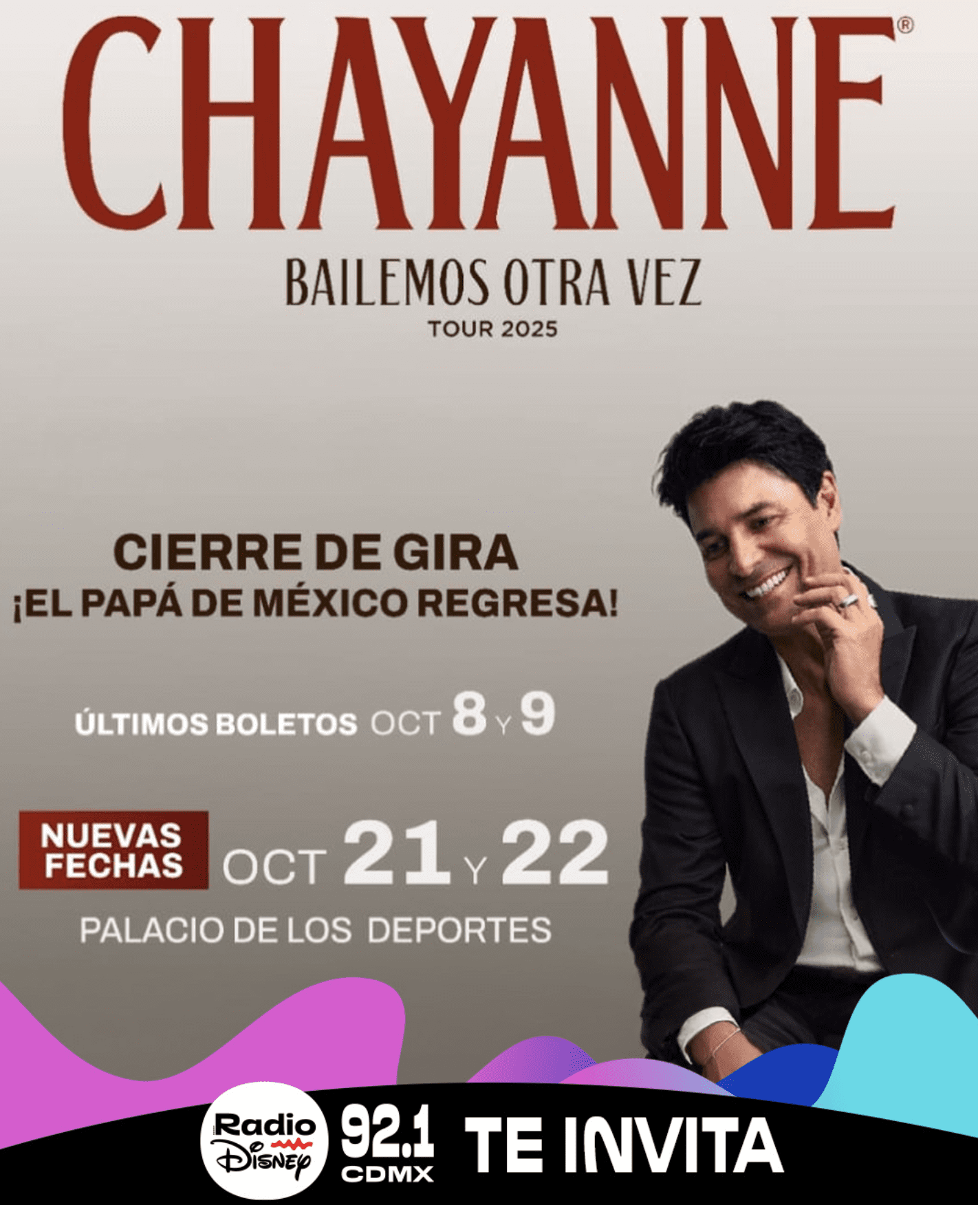 Radio Disney México regalará a los participantes ganadores: Un pase doble para asistir al concierto de Chayanne, este 22 de octubre de 2025 en el Palacio de los Deportes.