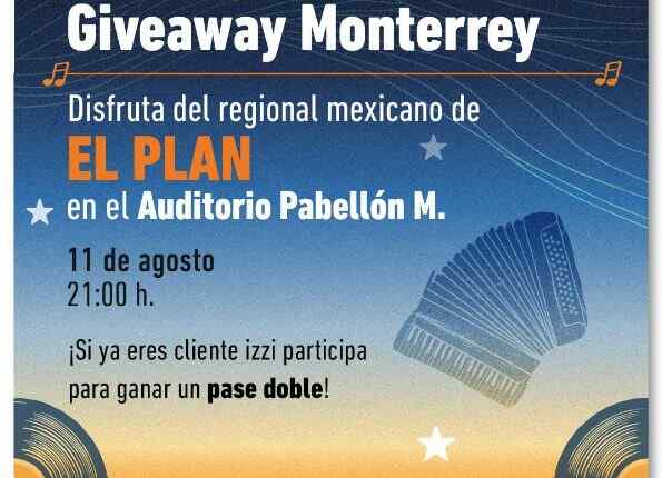 Izzi regalará a los participantes ganadores: Un acceso doble para asistir al concierto de El Plan, el 11 de agosto de 2023 a las 21:00 horas, el cual, se llevará a cabo en el Auditorio Pabellón M, ubicado en Melchor Ocampo No. 30, Col Centro, C.P. 64000, Monterrey, Nuevo León.
