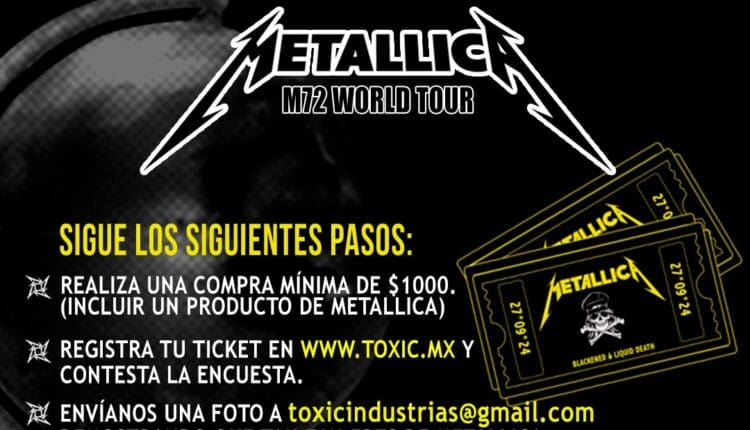 Realiza una compra mínima de $1,000.00 de productos Toxic y conserva tu ticket de compra. Ingresa a https://toxic.mx, regístrate y responde la trivia. Toma una foto mostrando que tan fan eres de Metallica y envíala vía correo electrónico a toxicindustrias@gmail.com.