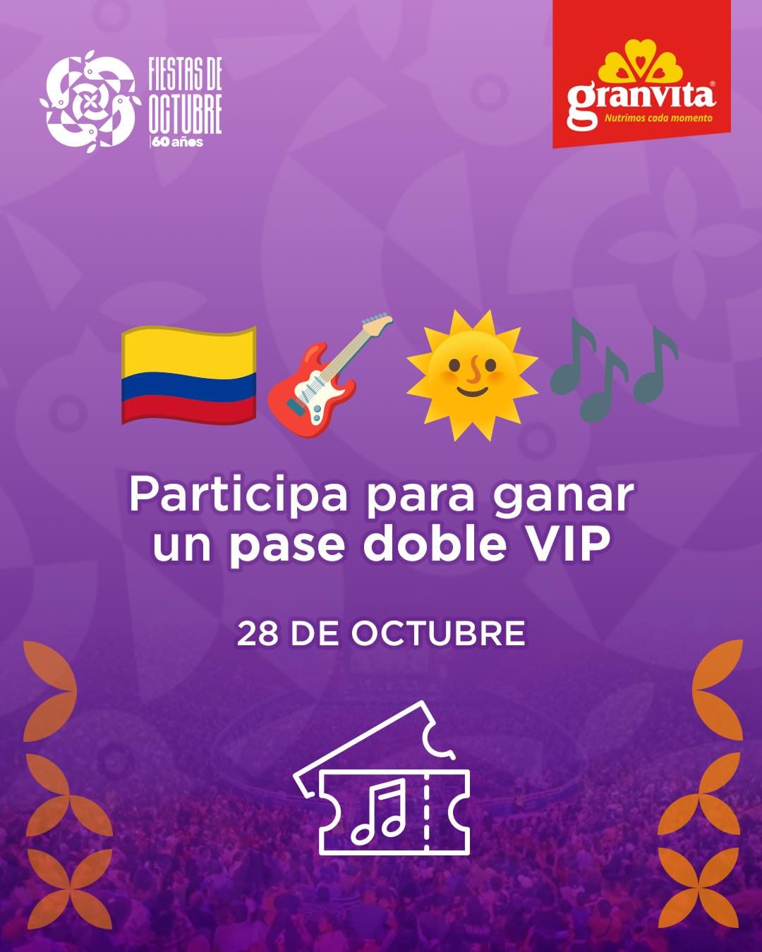 Granvita regalará al participante ganador: Un pase doble VIP para asistir al concierto del 28 de octubre de las Fiestas de Octubre en Guadalajara.