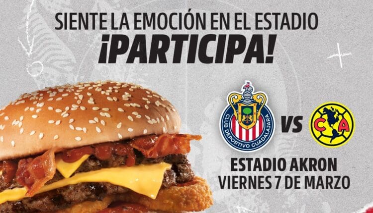 Carl’s Jr. México regalará a los participantes ganadores: Boletos al partido de América vs Chivas Femenil, este 7 de marzo de 2025 en el Estadio Akron.