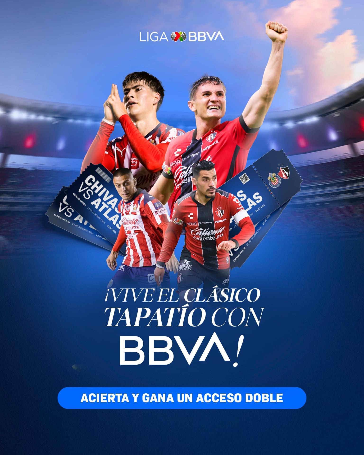 Liga BBVA Mx te invita a participar a su concurso en el que podrás ganar boletos dobles al Clásico Tapatío Chivas vs Atlas, si quieres ser ganador realiza la mecánica siguiente: