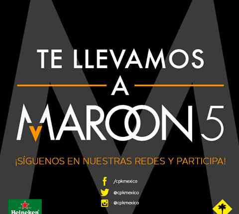 Habrá 2 ganadores de boletos dobles para el concierto de Maroon 5, que se llevará a cabo en la ciudad de México el próximo 29 de febrero del 2016.
