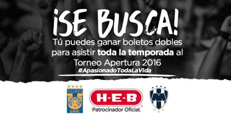 HEB ha dado a conocer un nuevo concurso en el que estará dando como premio boletos dobles para que puedas asistir a los partidos de Tigres o Rayados durante todo el torneo Apertura 2016.
