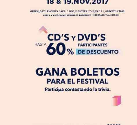 Compra productos del mueble Corona Capital 2017 o discos participantes en todas físicas u online de Mixup, ingresa a la página del concurso en http://www.mixup.com/Trivias/Corona_2017/cont_trivia.asp