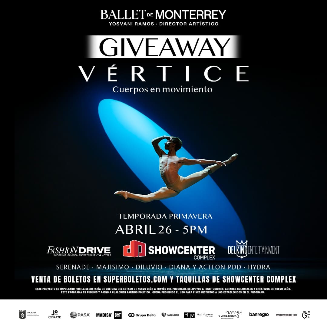 Fashion Drive regalará a los participantes ganadores: Un pase doble para el Ballet de Monterrey en Showcenter Complex, este domingo 26 de abril de 2026 a las 17:00 horas.