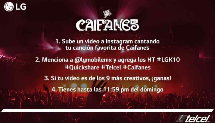 Sube un video a Instagram cantando tu canción favorita de Caifanes. Al subir tu video, menciona a @lgmobilemx y agrega los hashtag #Quickshare #Telcel #Caifanes #LGK10.