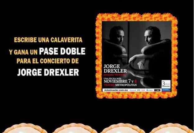 Plaza Tlalne te invita a participar a su concurso de calaveritas en el que podrás ganar boletos para el concierto de Jorge Drexler, si quieres ser ganador realiza la mecánica siguiente: