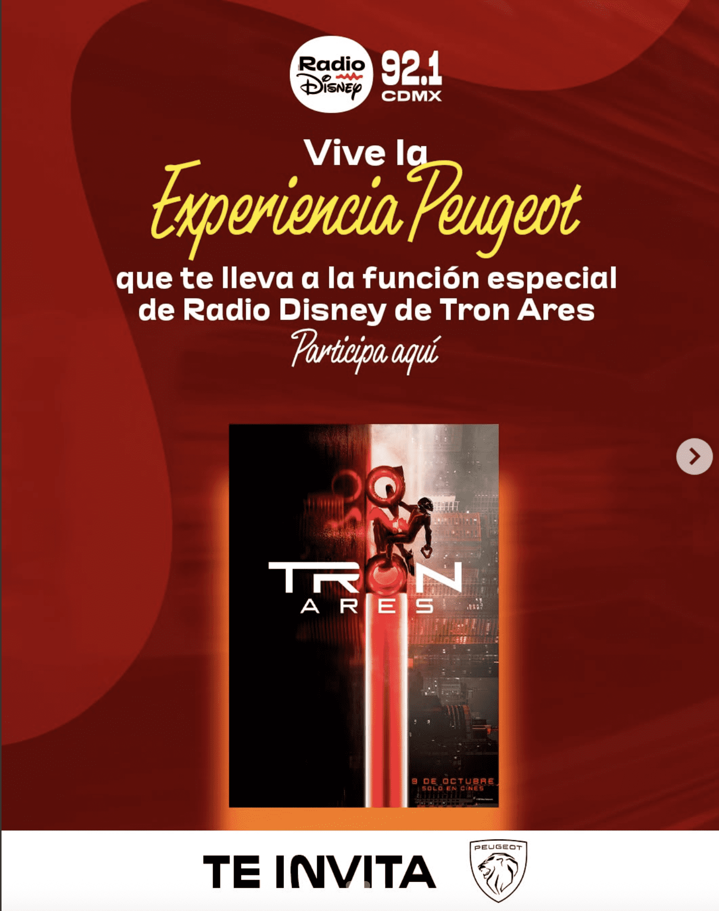 Comenta por qué te gustaría vivr esta experiencia a bordo de una Peugeot y gana entradas a la función especial de Tron Ares