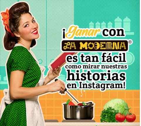 Ve las historias de Instagram de La Moderna, en los comentarios menciona cuántos empaques de pasta viste y gana kits de productos