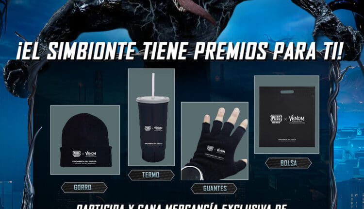 PUBG Mobile regalará a los participantes ganadores: Un kit de mercancía de PUBG Mobile x Venom que contiene un gorro, una bolsa, un vaso y un par de guantes.