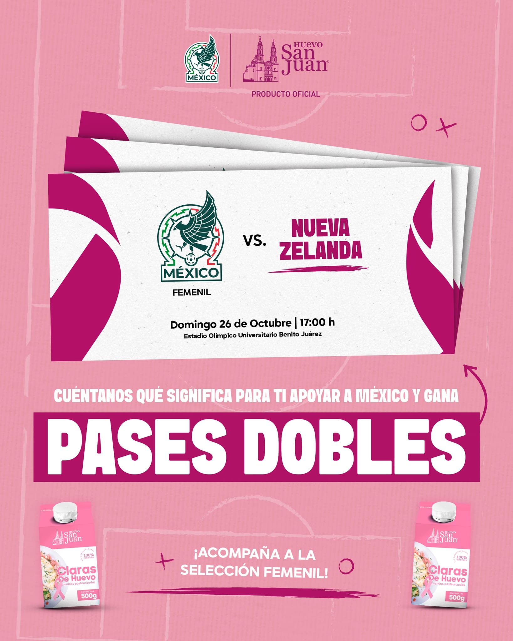 Huevo San Juan te invita a participar a su concurso en el que podrás ganar pases dobles al partido de la Selección Mexicana Femenil vs Nueva Zelanda, si quieres ser ganador realiza la mecánica siguiente: