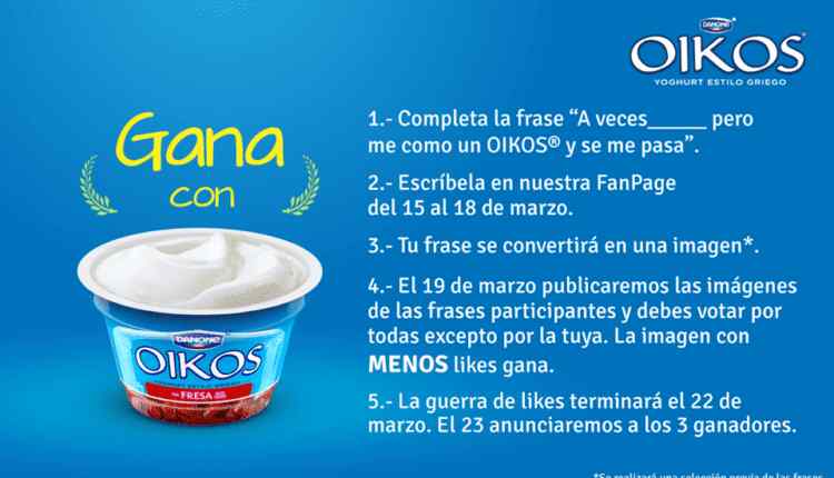 Para participar entra al Facebook de Oikos y escribe una frase del tipo “A veces ______ pero me como un Oikos y se me pasa” antes del 18 de marzo.
