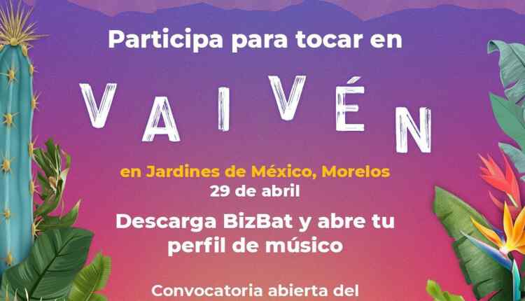 BizBat Music regalará al participante ganador: Su lugar para tocar en el Festival Vaivén 2023, este 29 de abril de 2023 en Jardines de México, Morelos.