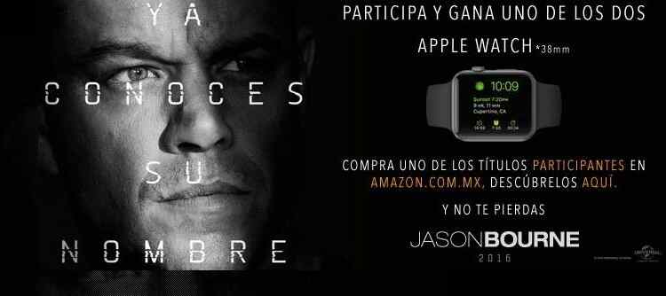 Amazon México, la película Jason Bourne de Universal Pictures te regalan 1 de los 2 Apple Watch Sport de 38mm o una colección de películas.