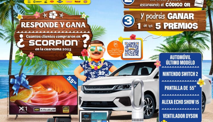 Ingres al portal del concurso en https://forms.gle/E8TP16HbPbDangB99, llena el formulario con tu nombre completo, teléfono, número de cliente, sucursal en la que realizaste tu compra, registra tu ticket de compra y responde a: ¿Cuantos clientes compraron en Scorpion en el 2025?