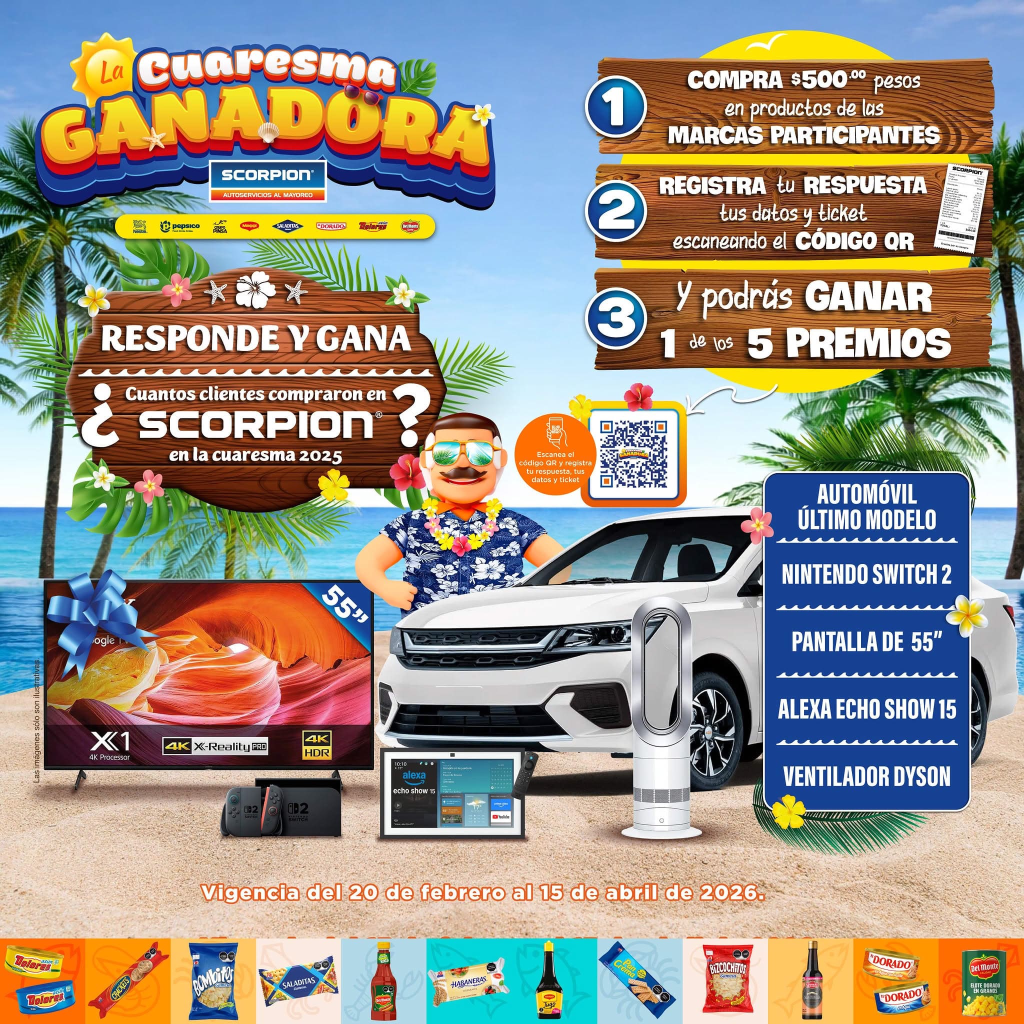 Grupo Scorpion México te invita a participar a su concurso Cuaresma Ganadora en el que podrás ganar un automóvil y más, si quieres ser ganador realiza la mecánica siguiente: