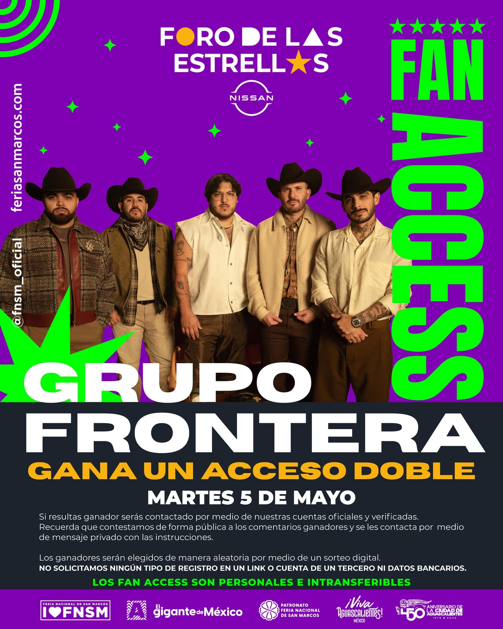 Feria Nacional de San Marcos regalará a los participantes ganadores: Un Fan Access para ver a Grupo Frontera, este 5 de mayo de 2026 en el Foro de las Estrellas Nissan.