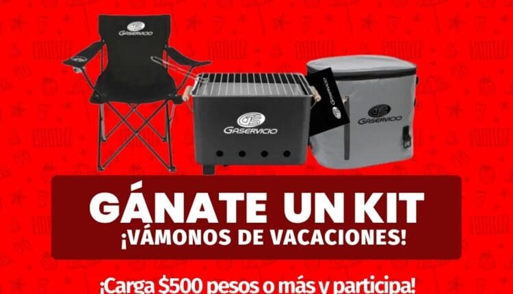 Gas Servicio regalará a los participantes ganadores: Un kit ¡Vámonos de vacaciones! que incluyen silla de playa, tapete de playa, asador y hielera.