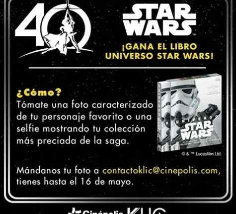 Cinépolis Klic te invita a participar en su concurso en el que podrás ganar un libro de 40 Aniversario de Star Wars, si quieres ser ganador realiza la mecánica siguiente: