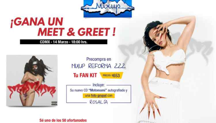 Pre compra en Mixup Reforma 222 el Fan Kit de Rosalía que incluye su nuevo CD autografiado y una foto grupal con Rosalía, deberás comprar este Fan Kit entre el 11 y el 13 de marzo de 2022.