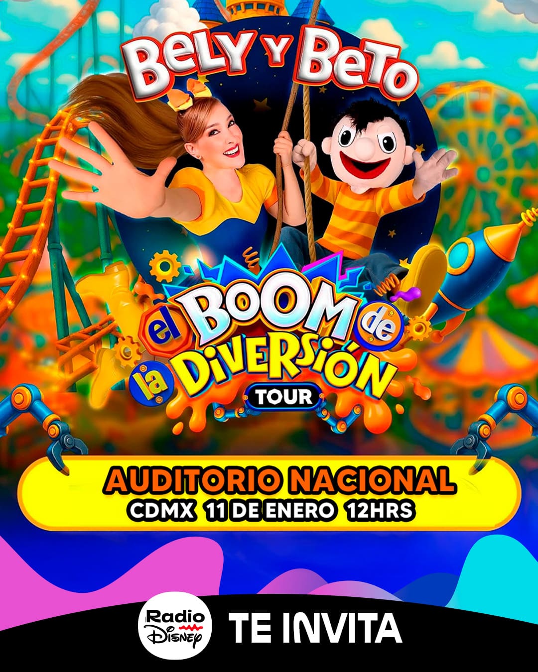 Radio Disney México regalará a los participantes ganadores: Un pase doble al show de Bely y Beto, para asistir este 11 de enero de 2026 en el Auditorio Nacional.