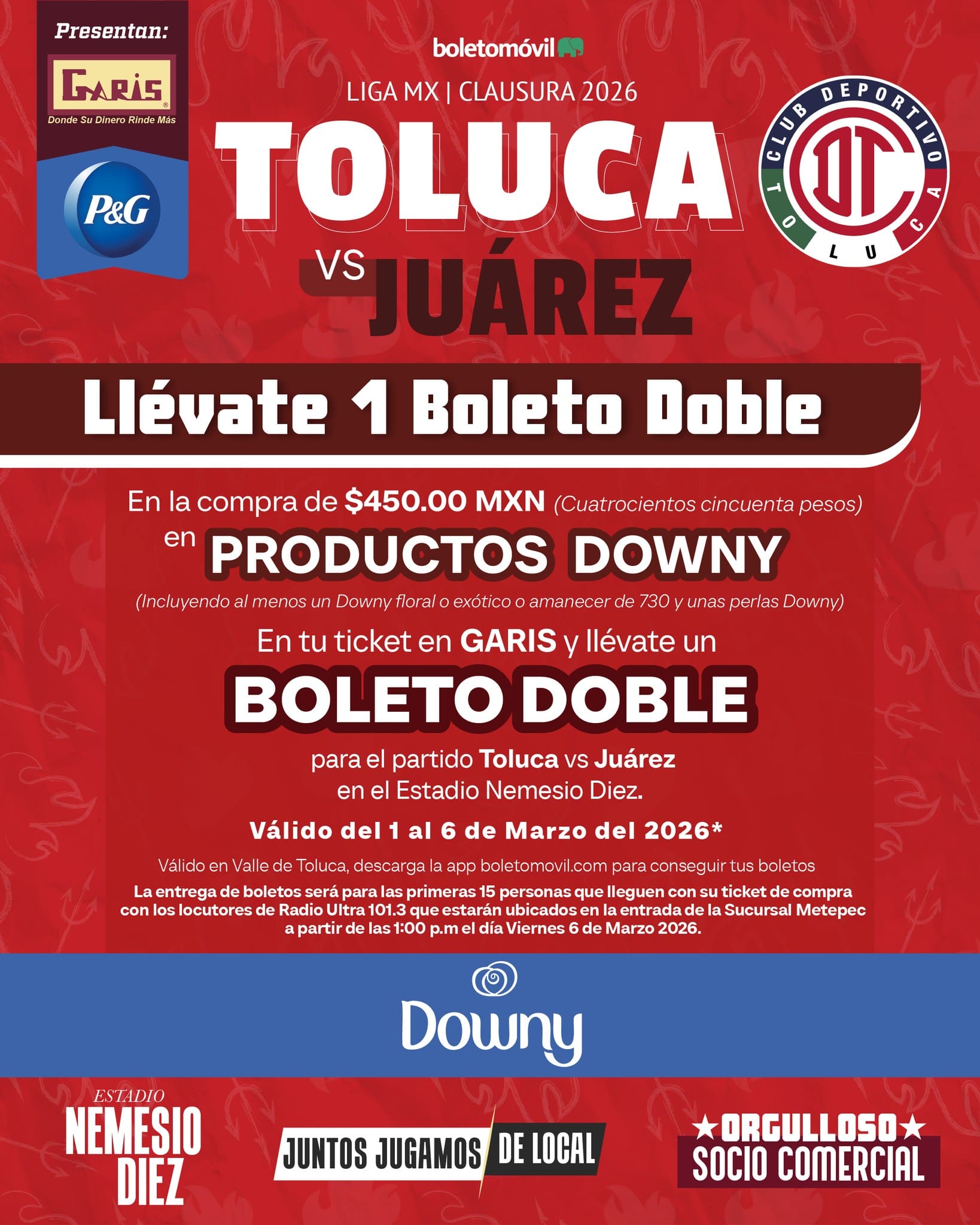 Realiza una compra de $450 en productos participantes y gana un pase doble para el partido Toluca vs Juarez