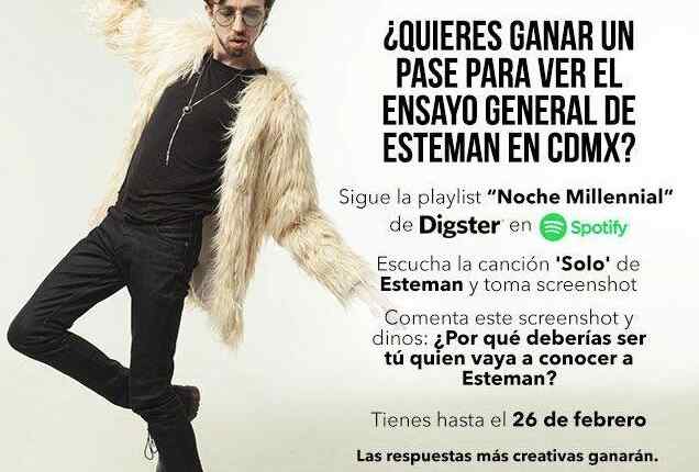 niversal Music México y Spotify regalarán a los participantes ganadores: Un pase para ver el ensayo general de Esteman en la CDMX