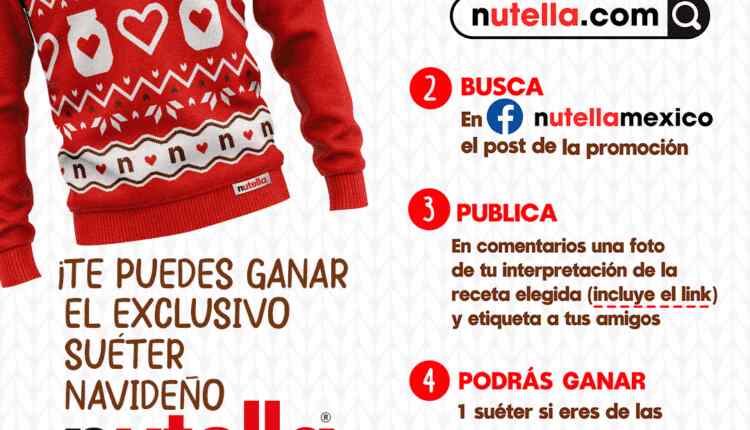 Nutella te invita a participar a su concurso en el que podrás ganar un suéter navideño exclusivo de Nutella, si quieres ser ganador realiza la mecánica siguiente: