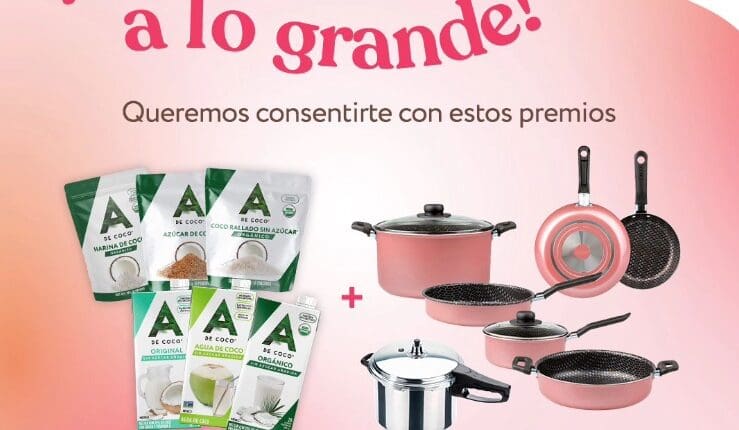 A de Coco te invita a participar a su concurso en el que podrás ganar una bateria de cocina Ekco de 32 piezas + kit de repostería + dotación de 6 meses de A de Coco, si quieres ser ganador realiza la mecánica siguiente: