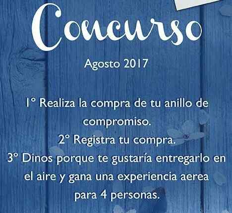 Compra un anilo de compromiso, registra tu ticket, menciona por qué te gustaría entregar el anillo en el aire y gana una experiencia aérea para 4 personas