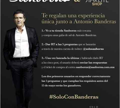 Sanborns te invita a participar en su concurso en el que podrás ganar una experiencia única con Antonio Banderas, si quieres ser ganador realiza la mecánica siguiente: