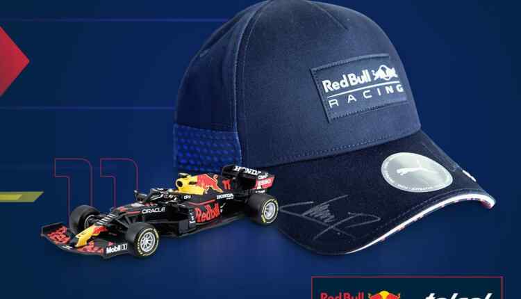 Telcel regalará a los participantes ganadores: 3 kits, cada uno incluye una gorra firmada por Checo Pérez y Max Verstappen + un auto miniatura Red Bull. Aplica un kit por ganador.