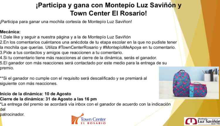 Montepío Luz Saviñón y Town Center El Rosario te invitan a participar a su concurso en el que podrás ganar una mochila, si quieres ser ganador realiza la mecánica siguiente: