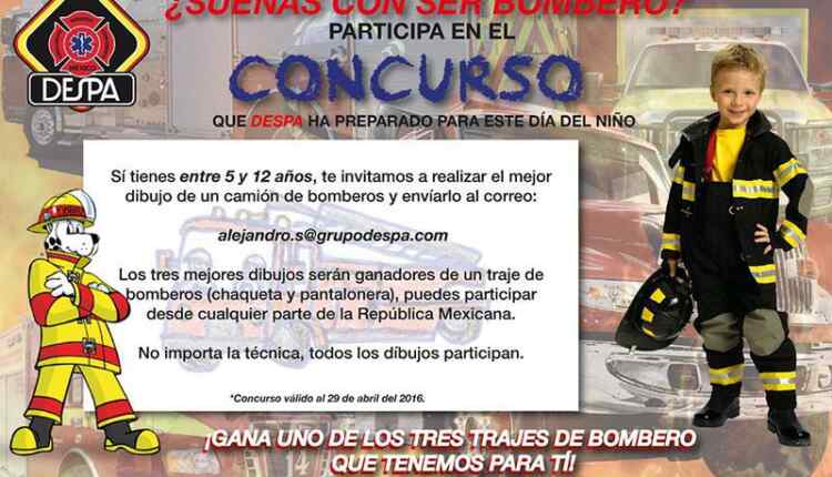 Despa Vehículos de Emergencia tiene un concurso del Día del niño en el que está regalando 3 trajes de bomberos para niños compuesto de chaqueta y pantalonera.