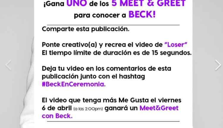 Ceremonia te invita a participar a su concurso en el que podrás ganar uno de los 5 meet & greet con Beck si quieres ser ganador realiza la mecánica siguiente:
