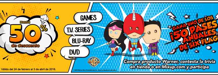 La trivia Warner de Mixup es vigente del 24 de febrero al 3 de abril de 2016.
