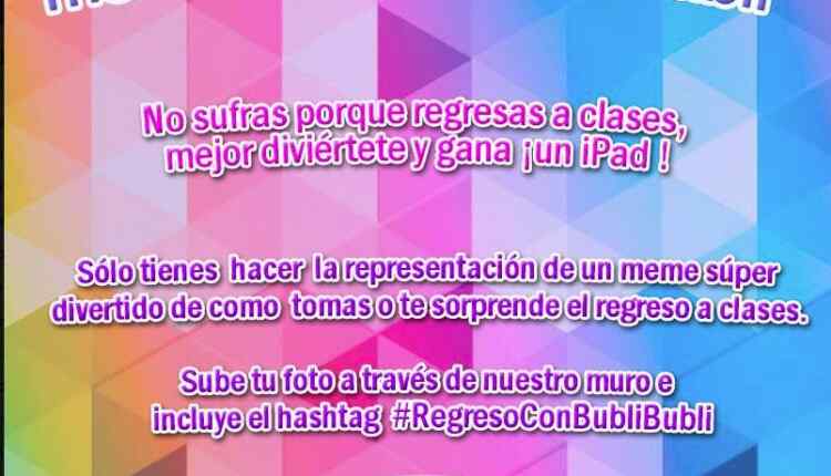 Comparte tu meme en el muro de Facebook de Bubli Bubli usando el hashtag #RegresoConBubliBubli, la foto más original y creativa será la ganadora del premio antes mencionado.