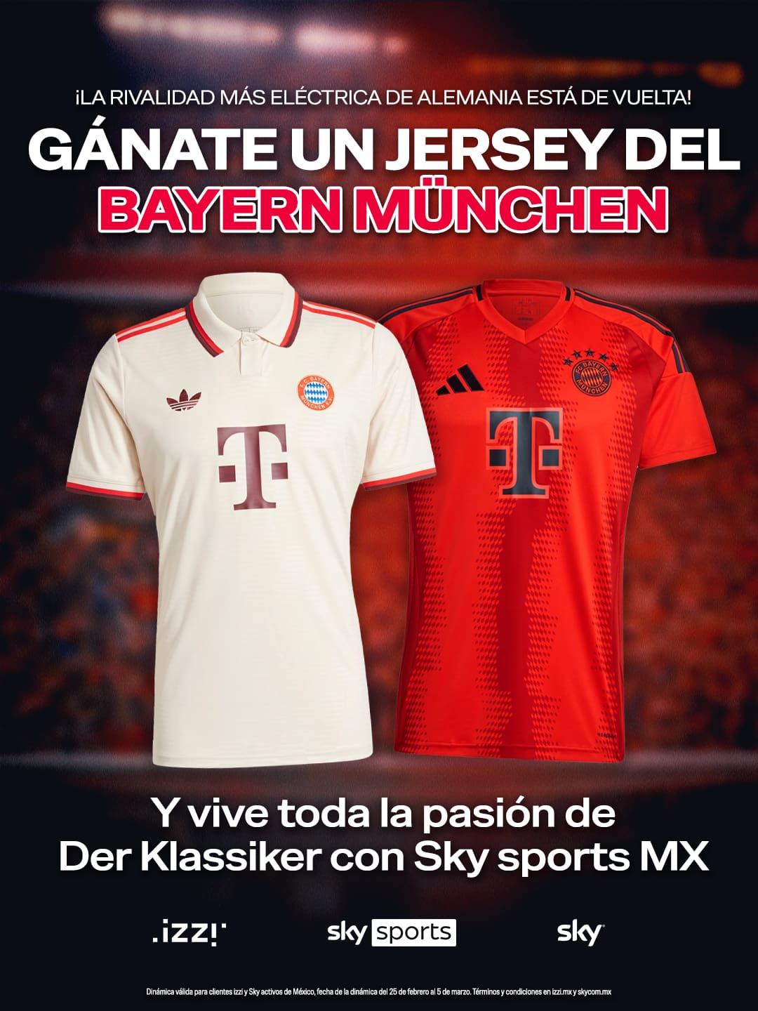 Izzi Telecom y Sky te invitan a participar a su concurso en el que podrás ganar un jersey del Bayern München, si quieres ser ganador realiza la mecánica siguiente: