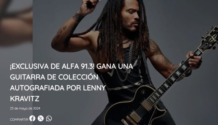 Alfa 91.3 te invita a participar a su concurso en el que podrás ganar una guitarra autografiada por Lenny Kravitz, si quieres ser ganador realiza la mecánica siguiente: