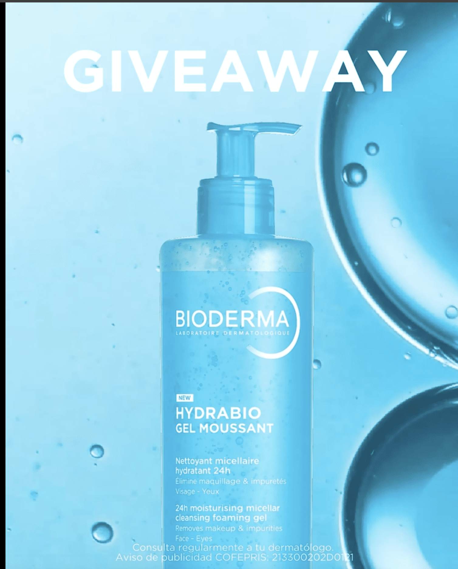 Bioderma México regalará a los participantes ganadores: 2 Gel Moussant Hydrabio de 400 ml cada una.