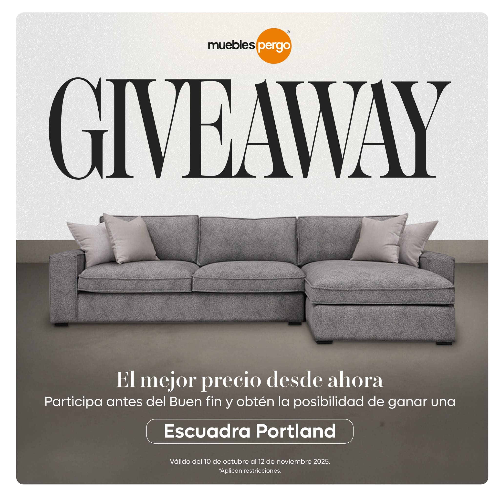 Muebles Pergo te invita a participar a su concurso Buen Fin 2025 en el que podrás ganar un sillón Escuadra Portland, si quieres ser ganador realiza la mecánica siguiente: